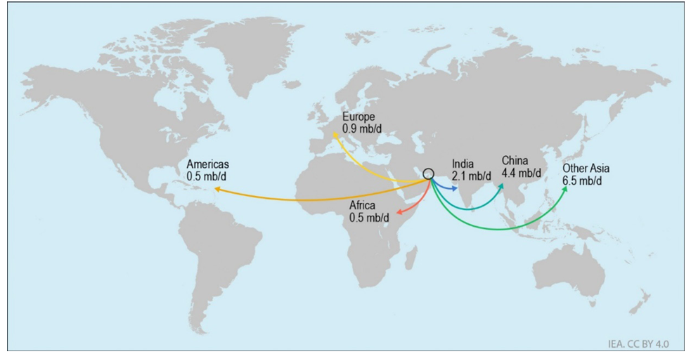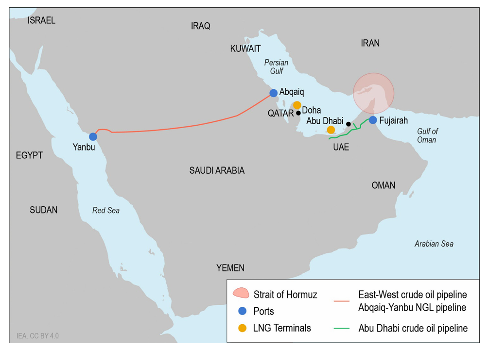 Saudi Arabia:The Abqaiq–Yanbu pipeline system, with a total capacity of 5 million barrels per day, offsets a portion of the reduction in global supply.