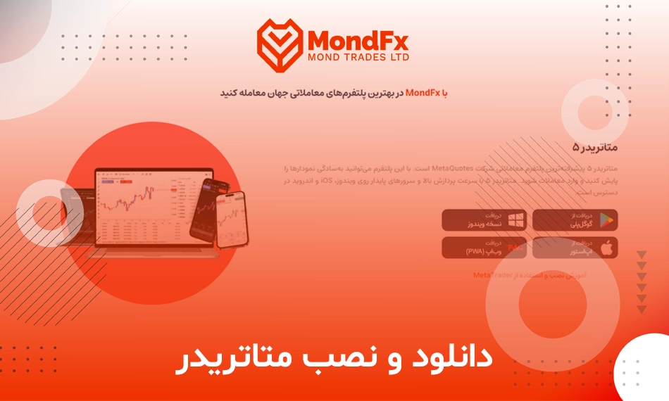 برای دانلود نرم افزار متاتریدر، باید به وب سایت بروکر خود مثلا بروکر موند اف ایکس مراجعه کنید. معمولاً بروکرها نسخه های مختلف متاتریدر را برای سیستم عامل های مختلف (ویندوز، مک، اندروید و iOS) فراهم می کنند. برخی بروکرها لینک دانلود مستقیم را از طریق حساب کاربری شما در اختیار می گذارند. علاوه بر این،در همان صفحه، فیلم آموزشی مربوط به نصب و کار با متاتریدر نیز قرار داده شده تا بتوانید به راحتی مراحل را دنبال کنید.