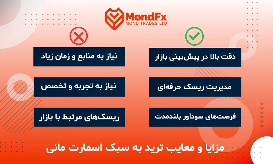 ترید به سبک اسمارت مانی مزایا و معایب خاص خود را دارد که برای هر تریدر باید بهطور دقیق بررسی شود.