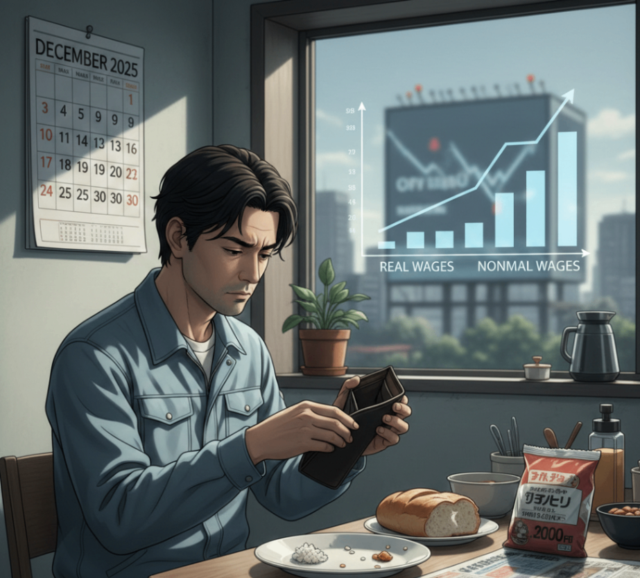 دستمزد واقعی کارگران ژاپنی در تمام ماههای سال ۲۰۲۵ کاهش یافت که نشاندهنده تداوم فشار تورمی است. در ماه دسامبر، دستمزد واقعی ۰.۱٪ افت کرد، در حالی که دستمزد اسمی ۲.۴٪ رشد داشت. کاهش قدرت خرید خانوارها نارضایتی عمومی را تشدید کرده و از سیاستهای انبساط مالی دولت تاکائیچی حمایت میکند. اقتصاددانان انتظار دارند با فروکش کردن تورم، بهویژه در بخش مواد غذایی، دستمزدهای واقعی در ماههای آینده بهبود یابد.
