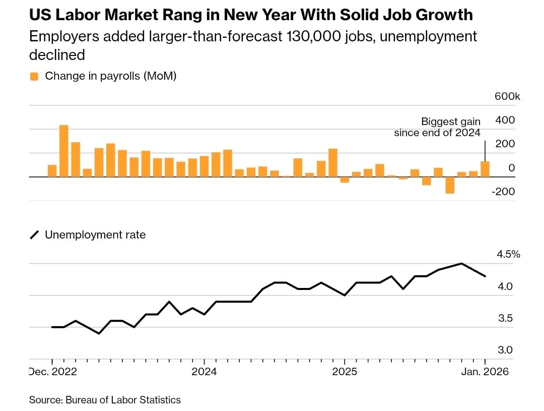 گزارش اشتغال ژانویه تصویری فراتر از انتظارات از بازار کار آمریکا ارائه داد و نشانههایی از تثبیت را نمایان کرد. این داده احتمال کاهش زودهنگام نرخ بهره را کاهش داده و موضع فدرال رزرو را محتاطتر کرده است.