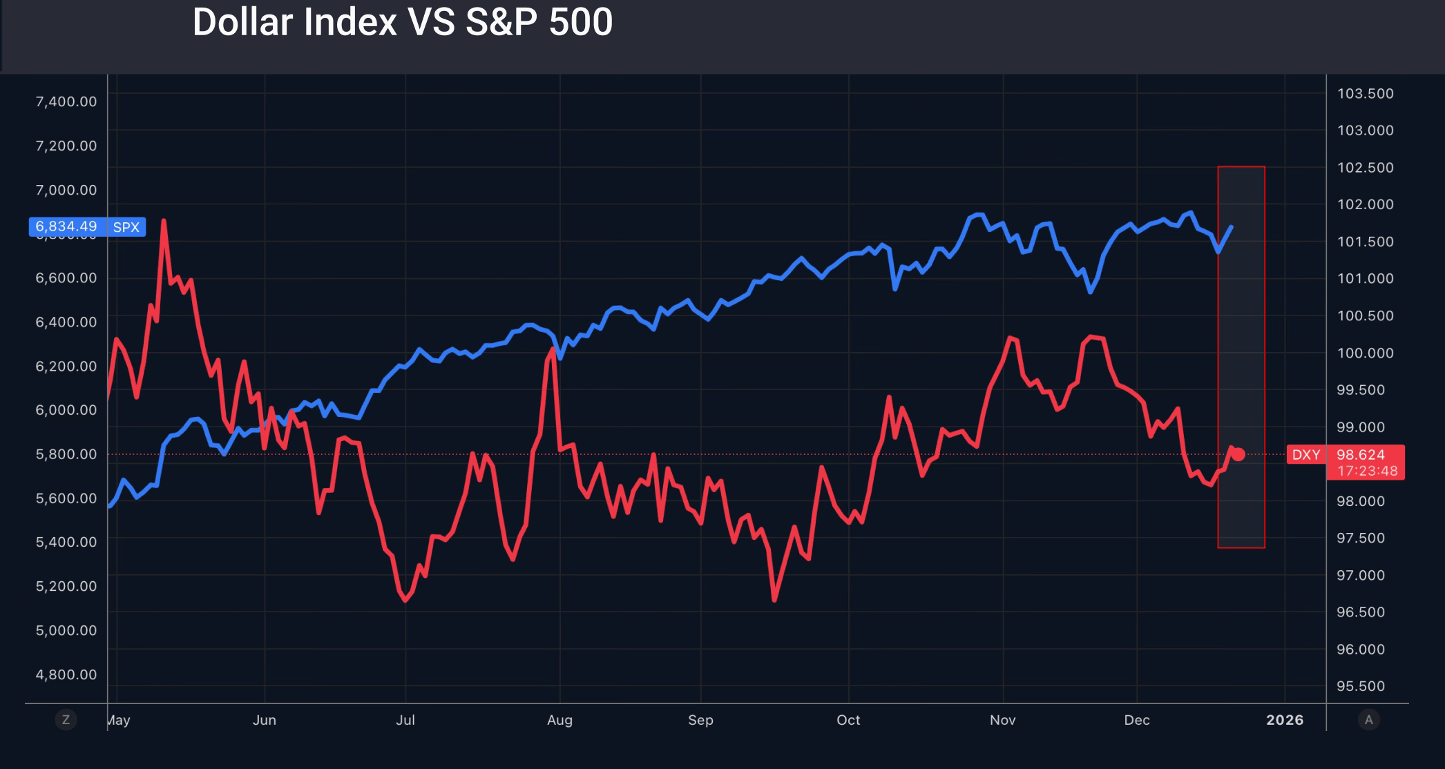 حرکت هم‌زمان شاخص دلار و S&P 500