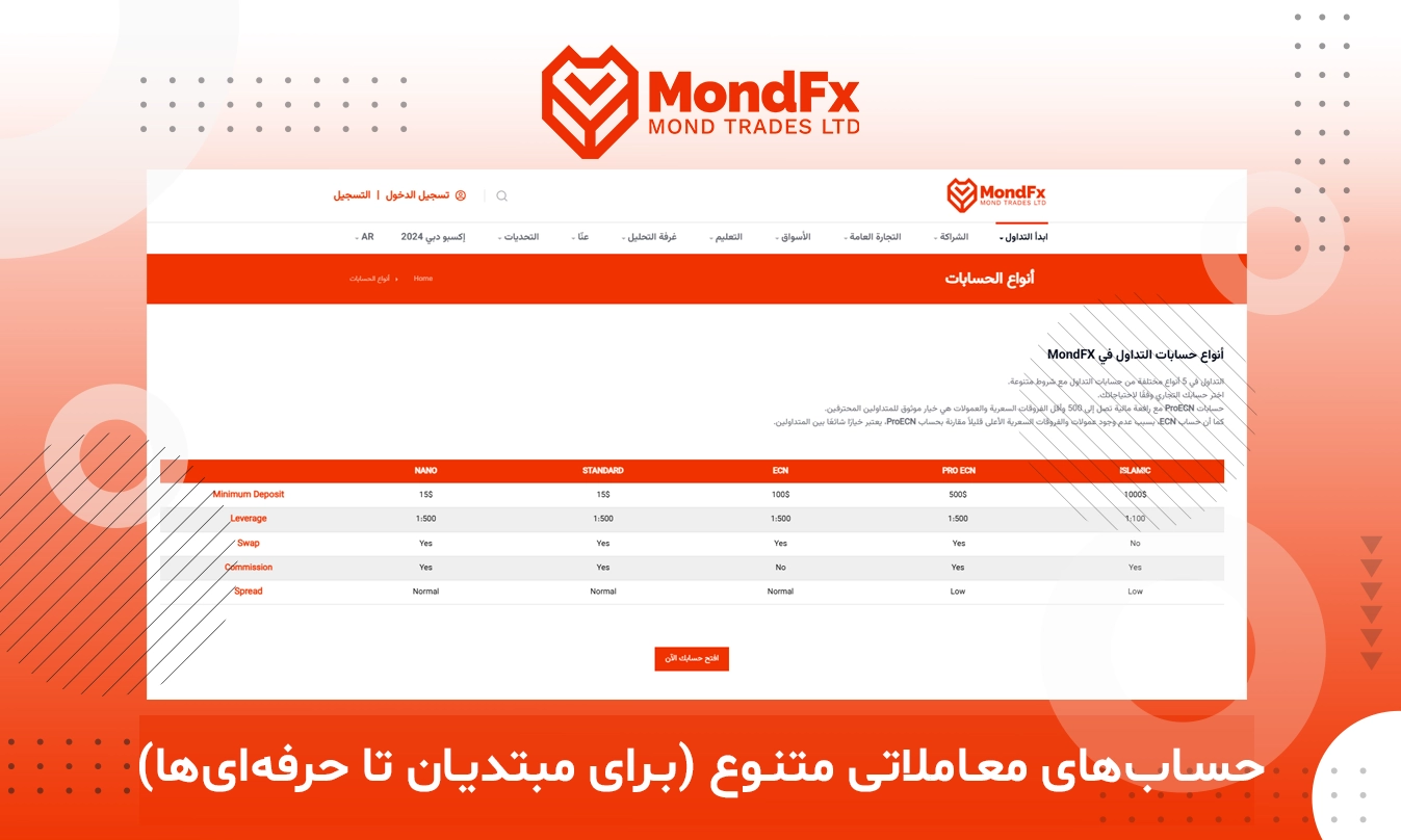 بروکر MondFX با ارائه اسپردهای رقابتی، حسابهای بدون کمیسیون، اجرای سریع معاملات و دسترسی به پلتفرمهای پیشرفته مانند متاتریدر 4 و 5، این امکان را برای معاملهگران عربی فراهم کرده است تا بدون هیچگونه محدودیتی، همانند معاملهگران حرفهای در بازارهای جهانی فعالیت کنند.