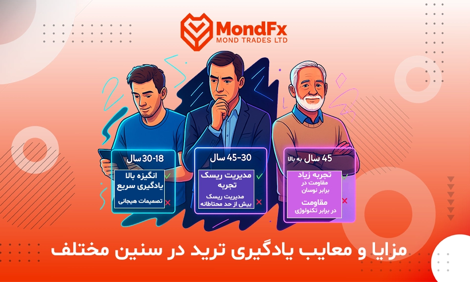 قبل از اینکه به بررسی فاکتور سن بر یادگیری ترید بپردازیم لازم است ذکر کنیم که سن به تنهایی عامل تعیین کننده موفقیت افراد در بازار فارکس نیست ولی از این جهت که سن افراد با با عوامل دیگری مانند: تجربه، نظم و انضباط، مدیریت ریسک و آمادگی روانی افراد رابطه مستقیم دارد، بنابراین بهتر است که تواناییها و محدودیتهای رفتاری خود را بر اساس سن خود شناخته و بر اساس آنها اقدام به معاملات و شروع فرایند یادگیری و تصمیمگیری کنیم.