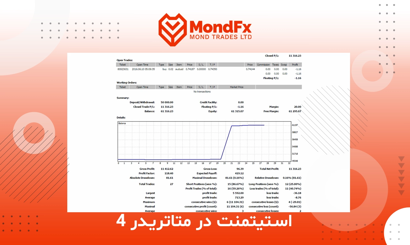 تحلیل عملکرد: معاملهگران میتوانند با بررسی استیتمنت، عملکرد خود را در بازههای زمانی مختلف ارزیابی کنند.