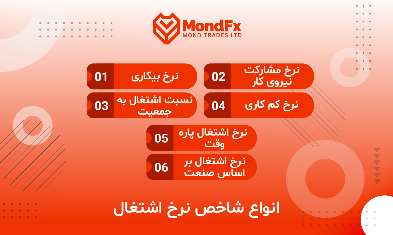 شاخص های نرخ اشتغال به تریدرها و سرمایهگذاران کمک میکنند تا تصمیمات مالی و سرمایهگذاری خود را بر اساس تحلیل دقیقتری از وضعیت اقتصادی اتخاذ کنند. در ادامه، به معرفی و توضیح انواع شاخصهای نرخ اشتغال میپردازیم: