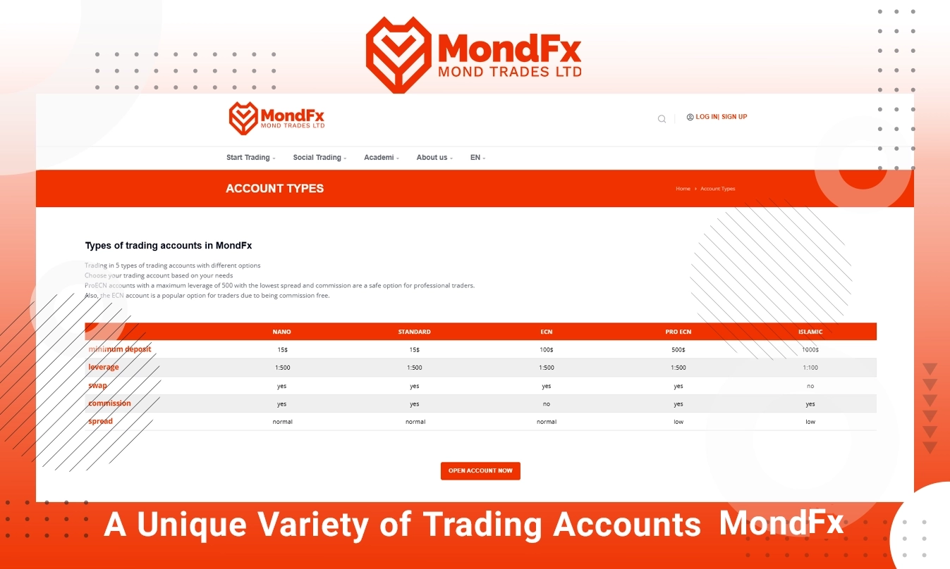 MondFx offers a diverse range of trading accounts, including Nano, Standard, ECN, and Pro ECN. This variety allows traders, from beginners to professionals, to choose an account tailored to their needs and strategies. For instance, Nano accounts are ideal for beginners, while Pro ECN accounts are perfect for advanced traders.