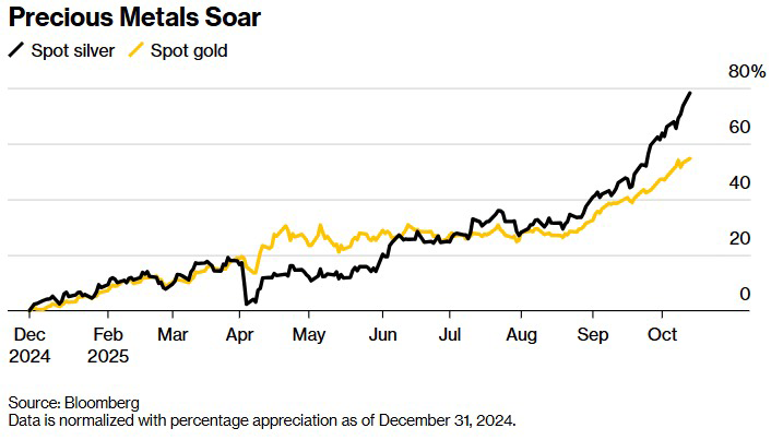 The silver market remains more volatile and riskier than gold; however, its correlation with gold means that any change in gold prices has a direct impact on silver as well. With ongoing economic uncertainties including the U.S. government shutdown and tariff negotiations between China and the United States an upward trend in precious metals, especially silver, is to be expected.