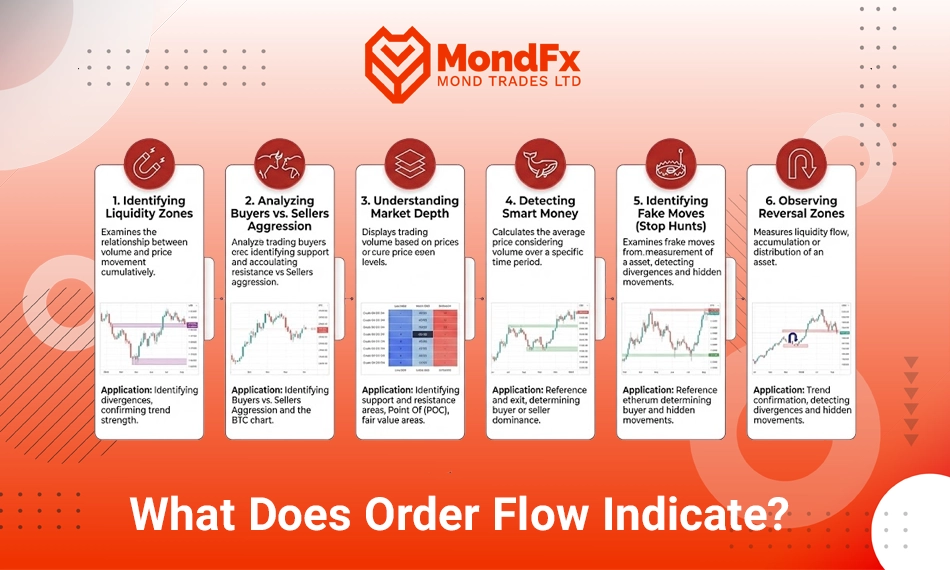 By analyzing Order Flow, traders can identify liquidity zones, buyer and seller behavior, market depth, smart money entry, fake market moves, and price reversal points.